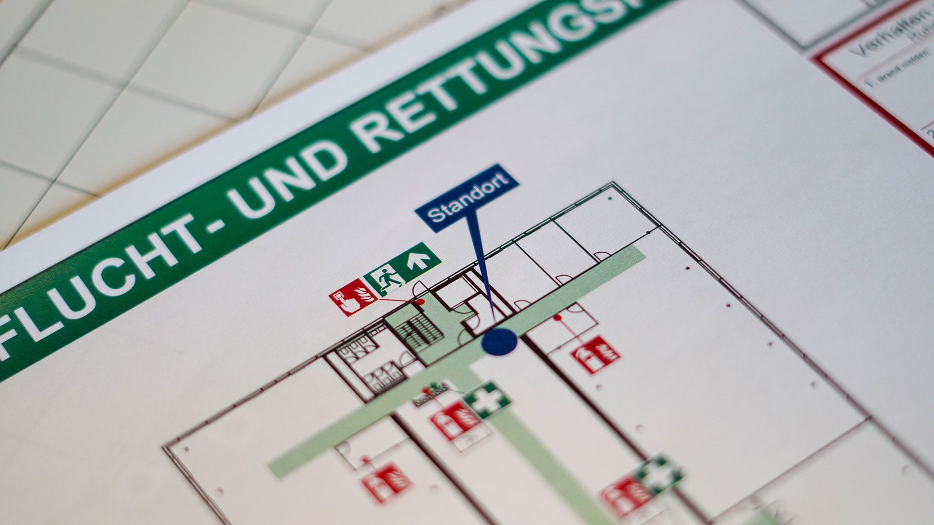 Bildnachweise | ©Eakrin (Motiv 2 Feuerlöscher), ©MATTHIAS BUEHNER (Motiv Feuerlöscher an der Wand), ©AA+W (Motiv Rauchmelder), ©Bettina (Motiv Flucht- und Rettungsplan), ©Ralf Geithe (Motiv Rauchabzug), ©Nik (Motiv Feuerlöschübung), ©Andrey Popov (Motiv Prüfung Feuerlöscher) - alles von stock.adobe.com